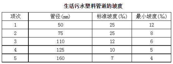 2、生活污水塑料管道的坡度必须符合设计要求或下表要求。