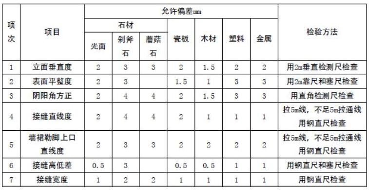 东莞酒店装修验收标准如下: