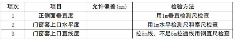 4、门窗套安装的允许偏差和检验方法如下